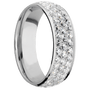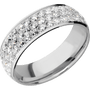 7 mm wide/Domed/14K White Gold band with a 3 Row Half Eternity arrangement of .03 carat Round Lab Grown Diamond (ST) stones in a Bead Channel setting.