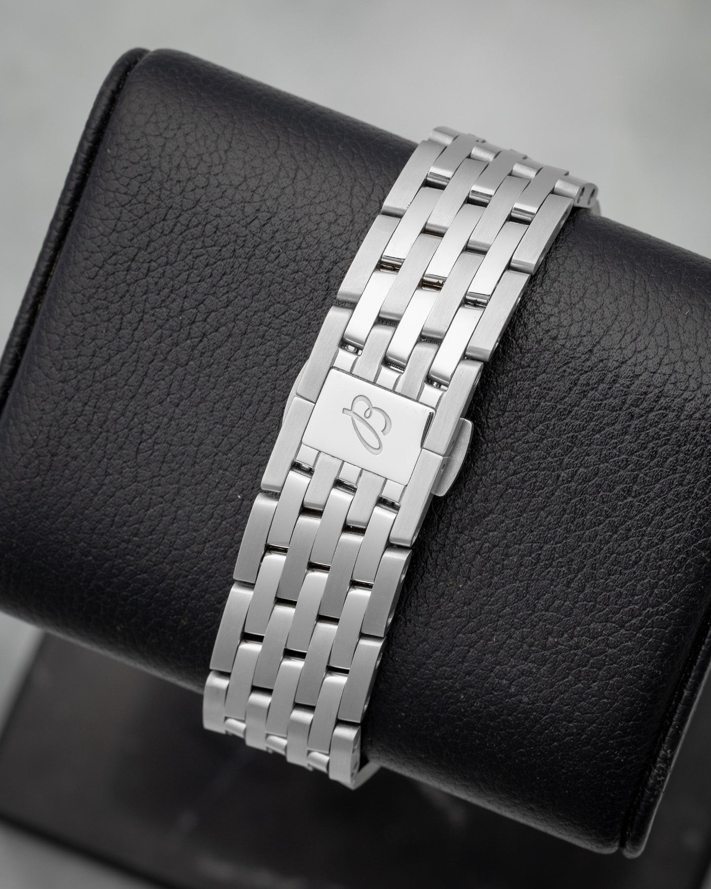 The Breitling Navitimer B01 AB0139211G1A1 carries one of the most iconic designs in aviation watchmaking. The 41mm steel case frames a clean silver dial with contrasting chronograph registers and a date window at 6. Its slide rule bezel nods to the original pilot’s tool watch, while the B01 movement inside keeps things modern with a 70-hour power reserve. Paired with a steel bracelet, this sport watch blends vintage flight-instrument aesthetics with contemporary precision.