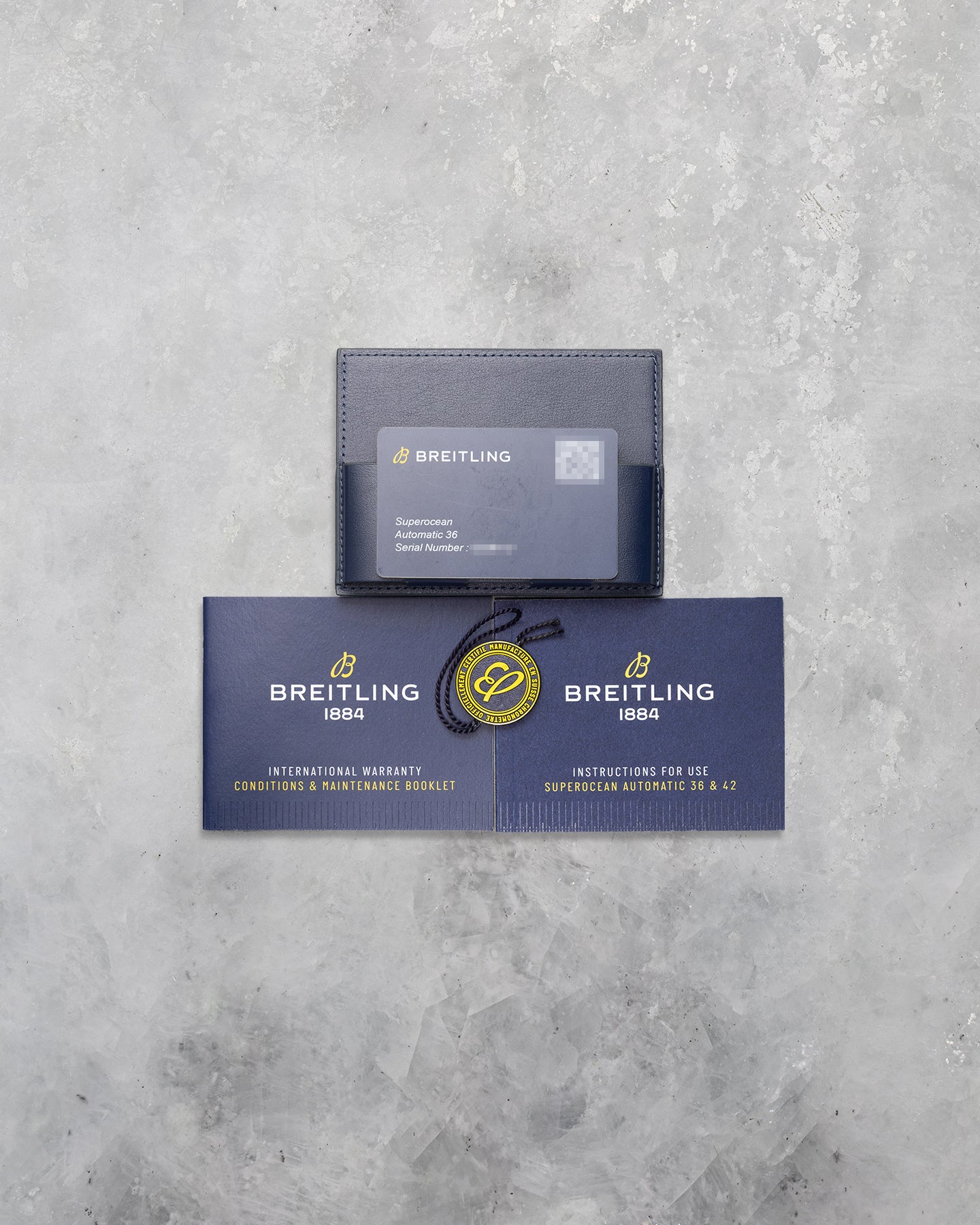 The Superocean Automatic 36 is one of those Breitling watches that earns its place in any rotation. Built around a 36mm stainless steel case with a uni-directional rotating bezel, the light blue dial keeps things fresh and easy to read, with luminous hands and Arabic numerals at the key positions. Inside, the COSC-certified Caliber 17 self-winding movement handles the heavy lifting. Paired with a navy Diver Pro III rubber strap, this sport watch is rated to 200 meters and looks just as good above the surface.