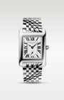 The new Classics Carrée Small Seconds collection features a 36x25mm polished stainless steel 3-part case with a silver color dial with matt finishing, black printed Roman numerals, black hour and minute hands, a small seconds counter at 6 o’clock with black hand. Set on a polished stainless steel 7-links bracelet with folding buckle.