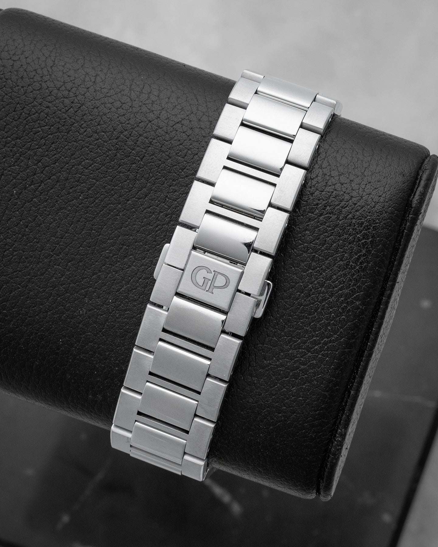 The Laureato 81010-11-431-11A balances sharp geometry with an easy, everyday presence. Its 42mm steel case pairs a circular base with an octagonal bezel, giving the sport watch its signature profile. The blue Clous de Paris dial adds texture and depth, finished with a framed date at three oclock. The in house GP01800 automatic movement delivers steady performance and a 54 hour reserve. A Girard Perregaux watch designed to move easily between settings.