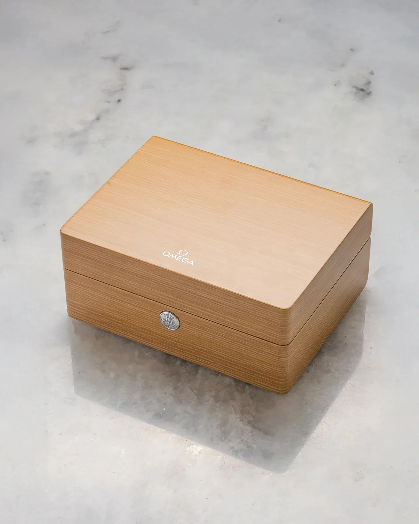 The Seamaster Diver 300M 210.30.42.20.03.001 carries on one of the strongest lineages in modern dive watches. At 42mm, the steel case feels balanced, framed by a blue ceramic bezel and paired with a matching wave-pattern dial. Luminous markers and skeleton hands keep things sharp, while the date window at six keeps it practical. Inside beats the Master Chronometer Calibre 8800, visible through the sapphire back. An Omega watch that delivers both the looks and the reliability you want in a sport watch.