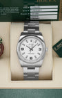 The Rolex Air-King 114200 is one of those watches that perfectly marries sportiness with classic Rolex elegance. The crisp white dial, framed by the iconic oyster bracelet, feels effortlessly versatile—whether you’re dressing up for a night out or keeping it low-key on the weekend. As one of Rolex’s most enduring sport watches, the Air-King carries a legacy of precision and durability that’s hard to beat. It’s more than just a watch; it’s a statement piece that holds its own in any collection. If you’re after a men's watch that balances style and performance, this Air-King gets it right.