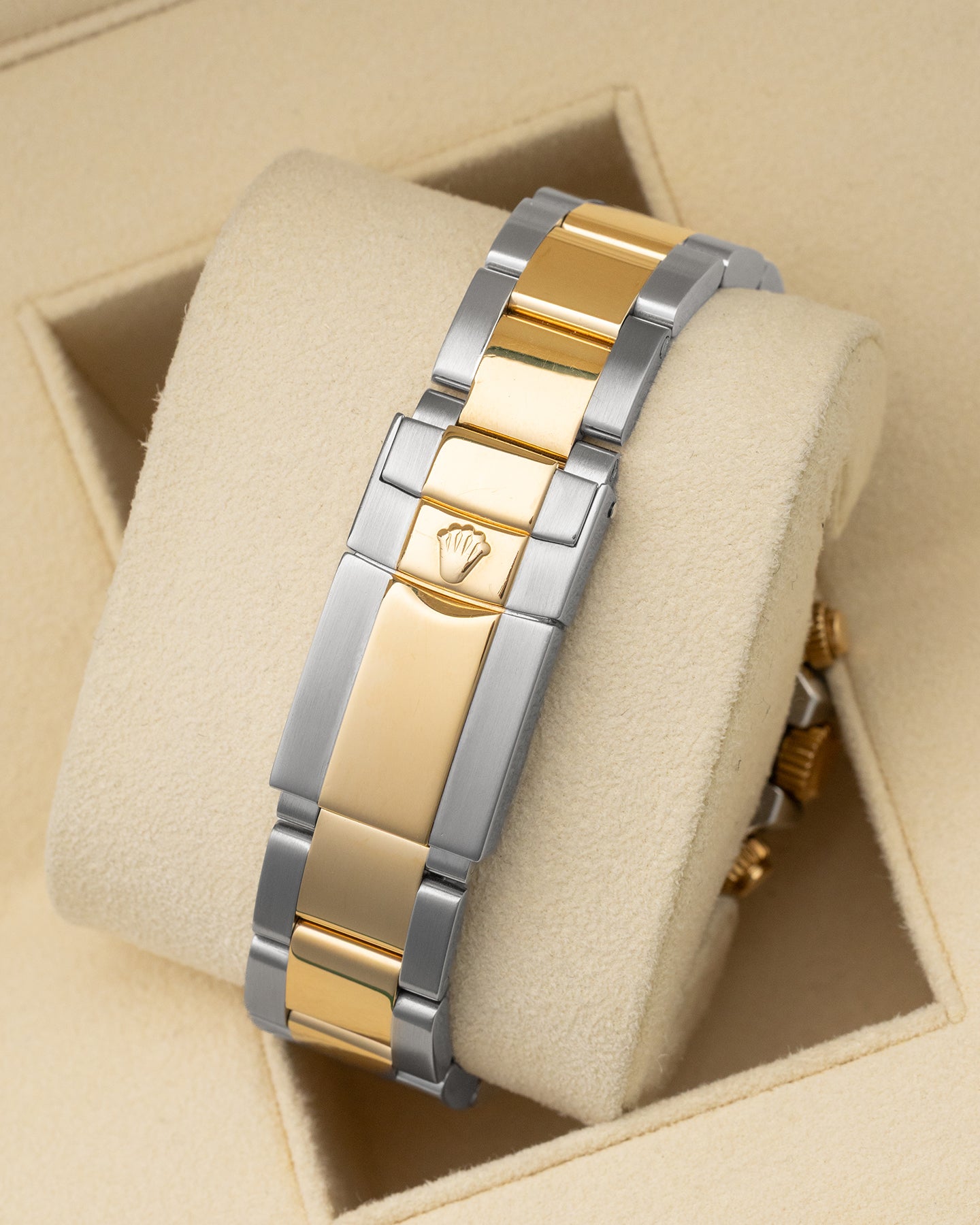The Rolex Daytona 116523 brings a different energy to the chronograph world. Steel and yellow gold work together to frame a crisp white dial with gold-rimmed sub registers. The fixed yellow gold tachymeter bezel keeps the motorsport roots front and center, while the Caliber 4130 inside delivers smooth chronograph performance with a 3 day power reserve. A sport watch built for timing precision, yet refined enough to feel intentional beyond the track.