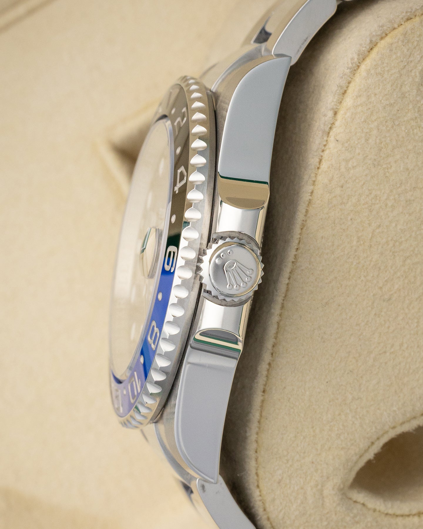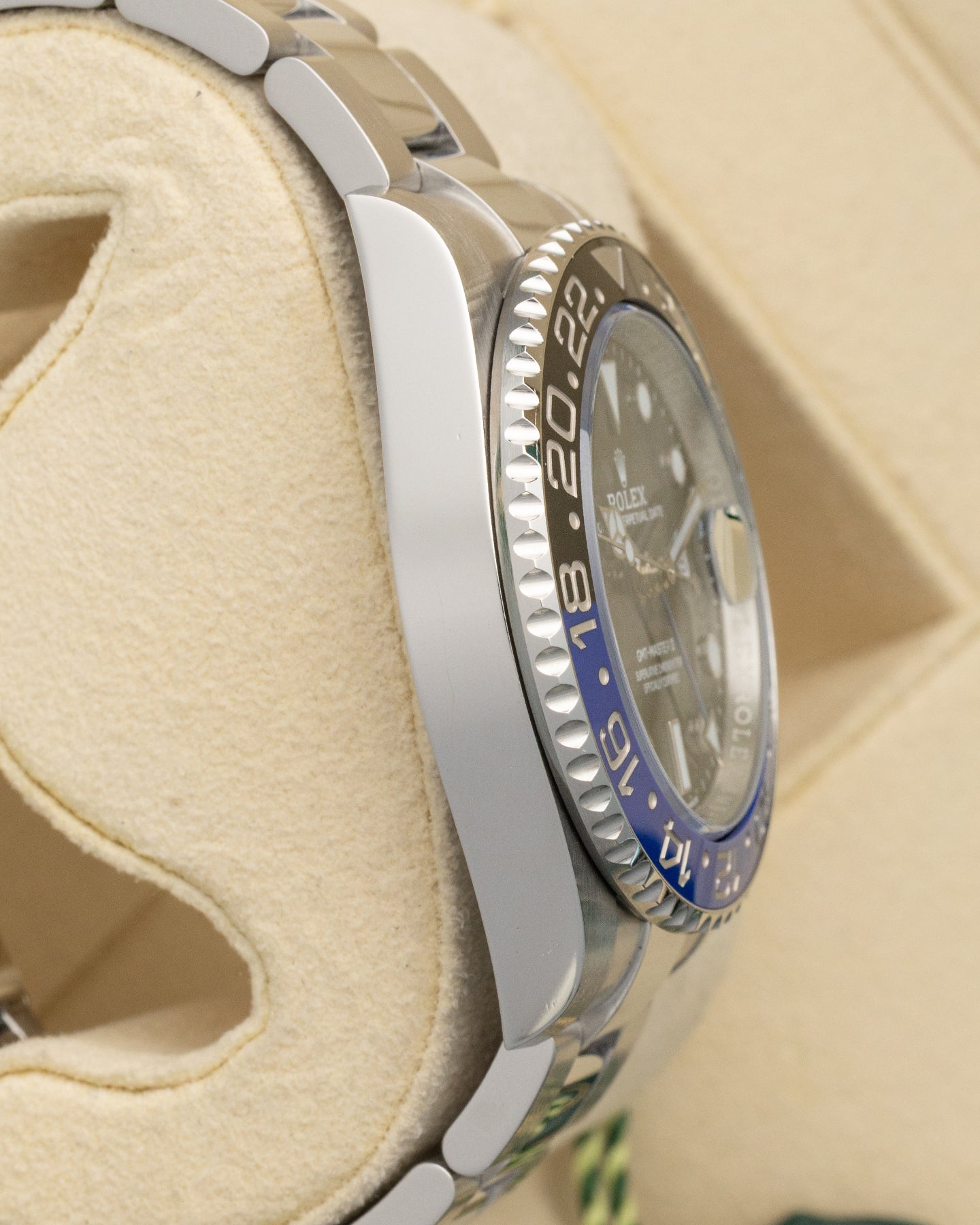 The GMT-Master II 126710BLNR is a sport watch that has earned its place through function as much as reputation. The bidirectional blue and black Cerachrom bezel tracks a second time zone across 24 hours, with platinum-coated numerals that hold their finish over time. The 40mm case sits on an Oyster bracelet, housing the Calibre 3285 with 70 hours of power reserve. For a Rolex watch built around real utility, the "Batman" remains one of the strongest cases in the collection.