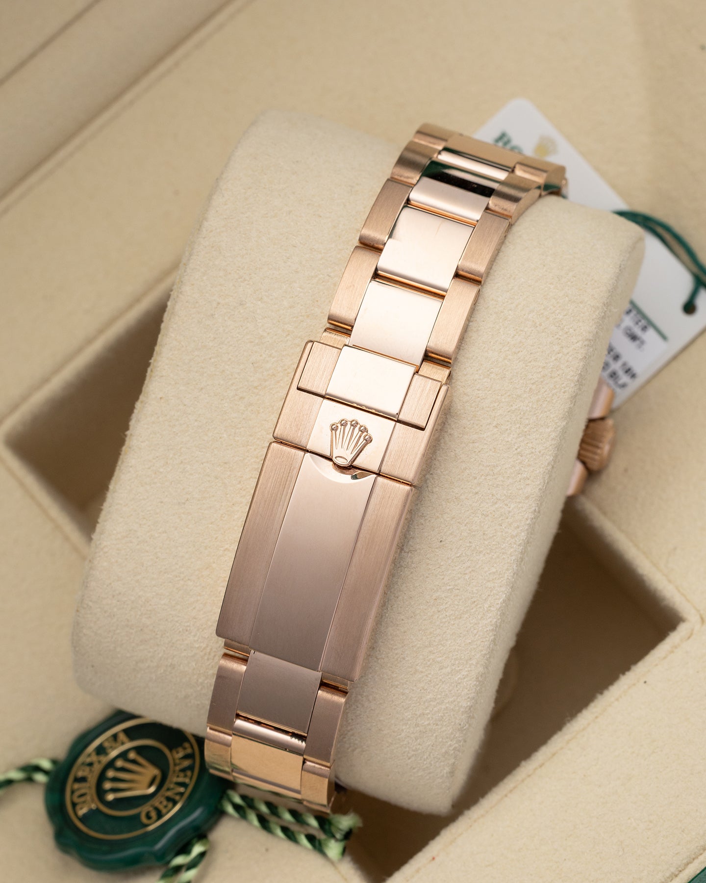 The Rolex GMT-Master II 126715CHNR brings refinement to one of the brand’s most iconic sport watches. The 40mm Everose gold case gives off a warm, understated glow that pairs perfectly with the brown and black ceramic bezel collectors know as the “Root Beer.” Inside, the Caliber 3285 movement keeps dual time zones running with effortless precision. A travel companion that balances comfort, craftsmanship, and just the right amount of wrist presence.
