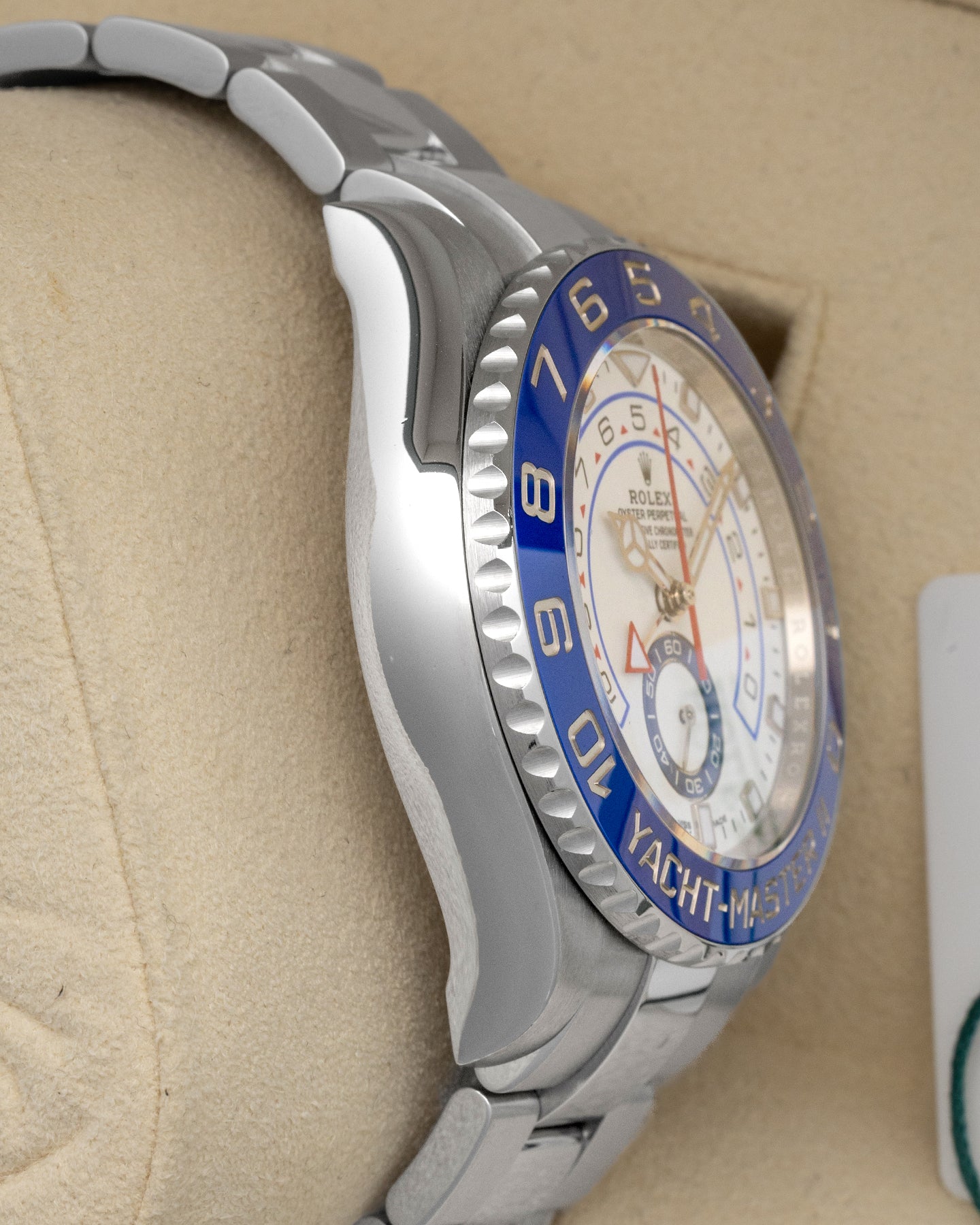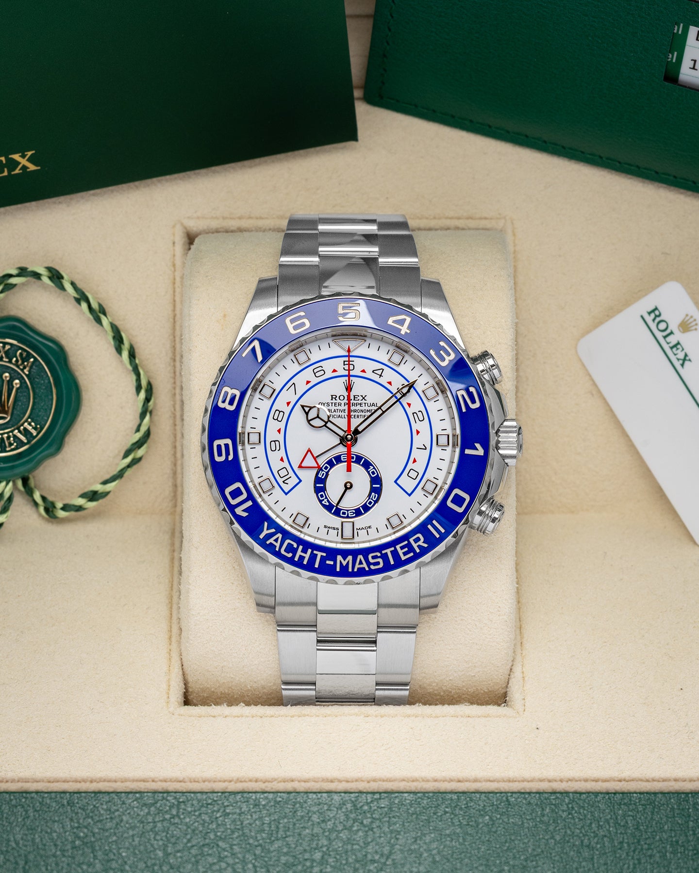 If there’s a sport watch that truly embodies the spectacle of sailing, it’s the Rolex Yacht-Master II 116680. At 44mm, it’s unapologetically large, with a white dial punctuated by blue accents and luminous markers. The rotating Cerachrom bezel isn’t just for looks—it syncs with the caliber 4161 movement to run the programmable regatta countdown timer. A Rolex watch bringing serious engineering and standout style to the wrist.