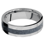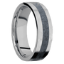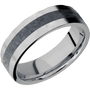 7 mm wide/Flat/Titanium band with one 3 mm Centered inlay of Blue Sapphire.