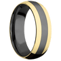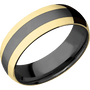 7 mm wide/Domed/Zirconium band with two 2 mm Double Off Center Edge inlays of 18K Yellow Gold.